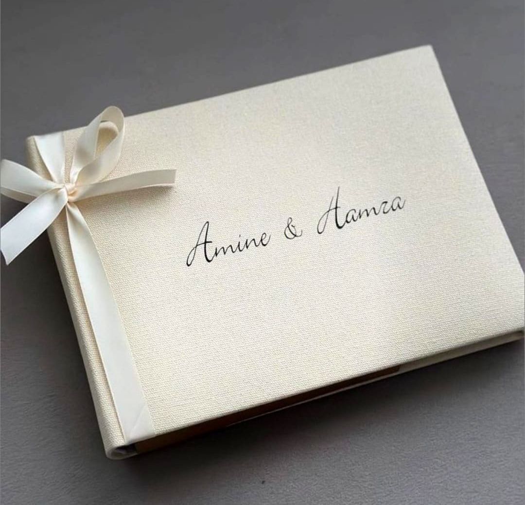 Az esküvő napja pillanatok alatt elrepül- az album segít újraélni minden mosolyt, könnyet és ölelést. Minden oldal egy emlék, amit kézzel készítettem a műhelyemben, hogy örökké tartson. Egy kézműves album nem csak képeket őriz, hanem történetet mesél – a tiéteket. Az Anzsu Könyvkötészetben minden album teljesen egyedi – te választod a borító anyagát, ami lehet selyemfényű, vagy vászon, plüss, műbőr vagy bőr. Te választhatod ki a szalag színét, a betűtípusát és a feliratot, kérhető név, dátum, grafika, illetve még saját fotóval is elkészítem. Minden darabot külön, kézzel készítek – nincs két egyforma.