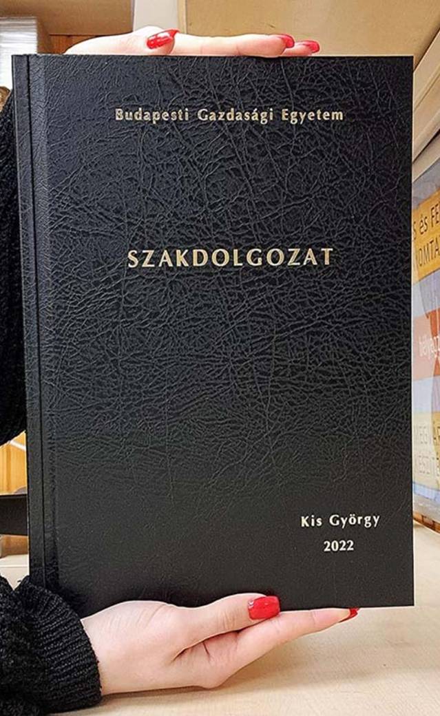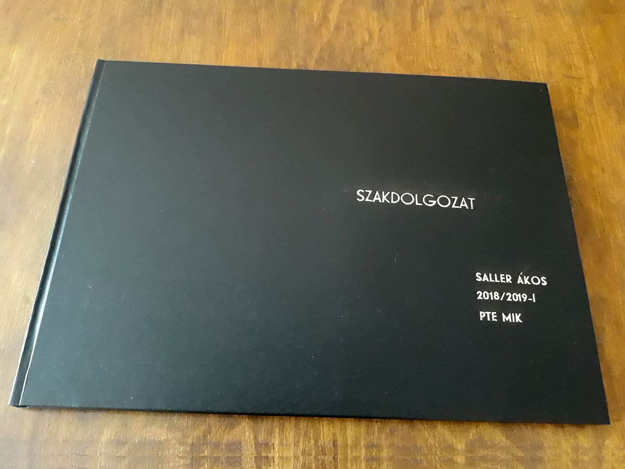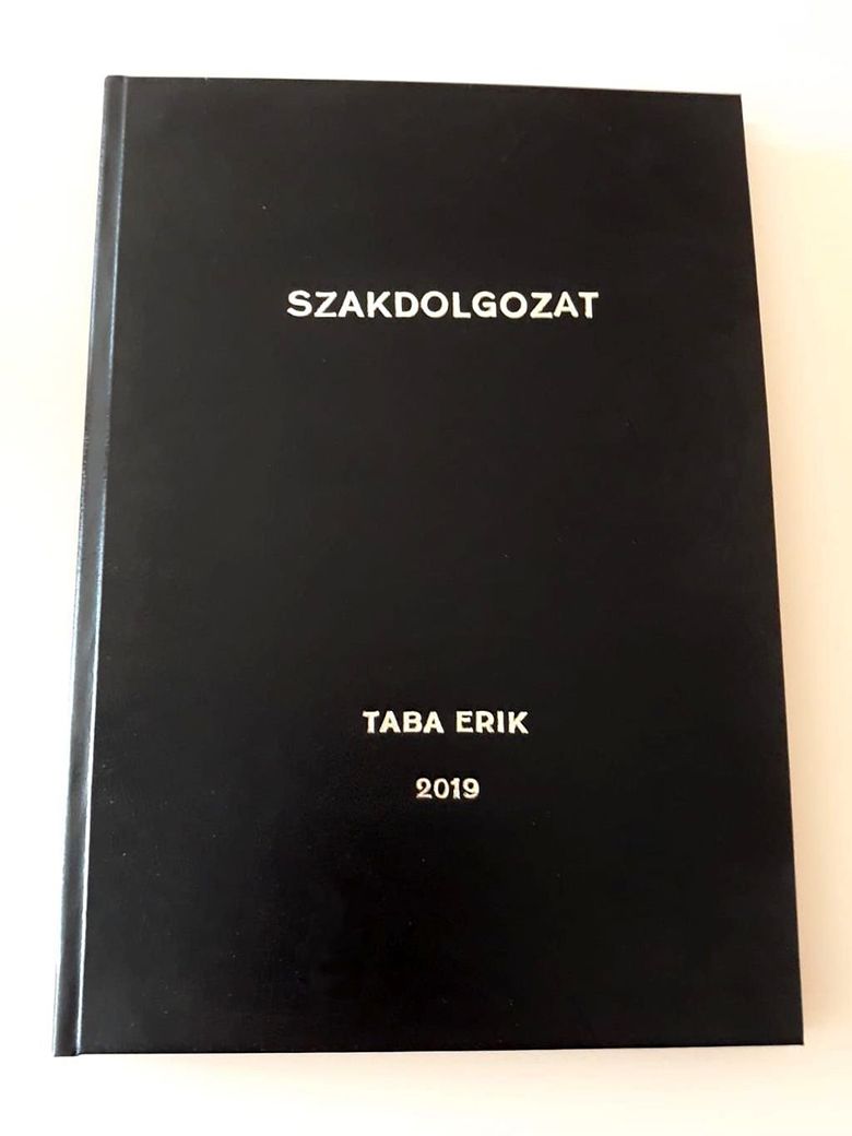 Tartós, kézzel készített szakdolgozat- és diplomamunka kötés. Baján és környékén a hagyományos technikával szinte csak én dolgozom. Célom, hogy a dolgozat méltó külsőt kapjon, amely kiemeli a befektetett munkát és erőfeszítést. Többféle borítószín és szöveg elrendezés. Akár egyedi szín, méret is választható, CD-tartós borítóval is kérhető.